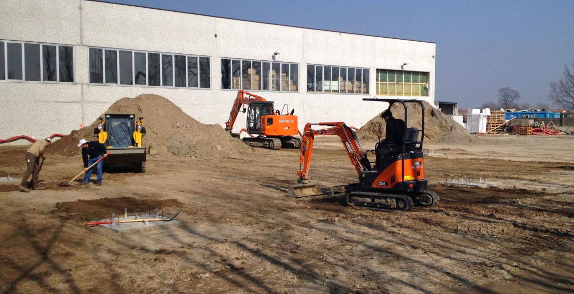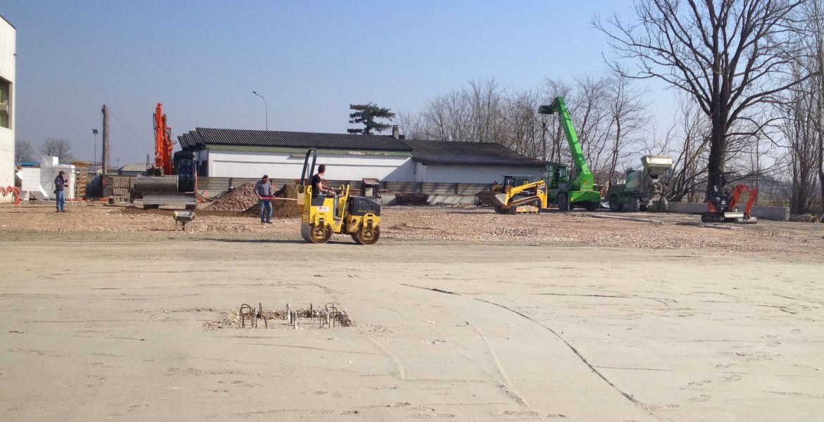 Classico ampliamento industriale; nuovo edificio di c.a 2000mq completamente antisismico, costruito in aderenza ai capannoni esistenti con realizzazione delle relative sottofondazioni. Demolizione di alcuni pilastri della vecchia struttura per permettere il proseguio delle attività produttive, le fondazioni, di tipo classico, hanno visto l’introduzione di dime con opportuni tirafondi per il futuro inghisaggio dei ferri di armatura dei pilastri prefabbricati. Tutta la realizzazione è stata eseguita nei modi e tempi previsti senza interrompere la produzione dello stabilimento.